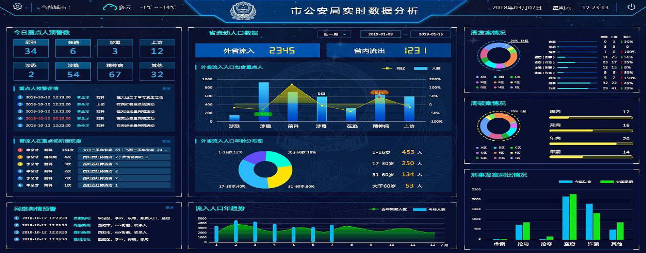智慧公安是以互聯網、物(wù)聯網、雲計(jì)算、智能(néng)引擎、視頻技術(shù)、數據挖掘、 知識管理(lǐ)等爲技術(shù) 支撐,以公安信息 化爲核心,通過互 聯化、物(wù)聯化、智能(néng)化的(de)方式,實現警務信息“高(gāo)度共 享、深度應用(yòng)”之目标的(de)警務發展新 模式。智慧公安大(dà)數據平台利用(yòng)雲計(jì)算、雲平台進行(xíng)智能(néng)分(fēn)析和(hé)處理(lǐ),以“人(rén)”爲中心,掌控“屋、車(chē)、路(lù)、網、場(chǎng)、組織”等周邊要素,形成的(de)動态軌迹管控機制(zhì)。遵循科 技強警的(de)發展戰略,充分(fēn)利用(yòng)雲計(jì)算、視頻物(wù)聯網、大(dà)數據和(hé)視頻智慧分(fēn)析技術(shù)、GIS、GPS、4G、移動警務智能(néng)系統、數字集群等前沿科技,通過面向實戰和(hé)服 務民(mín)衆的(de)頂層設計(jì),以及面向警務信息的(de)高(gāo)度共享機制(zhì)、系統的(de)強度整合機制(zhì)、應用(yòng)的(de)深度分(fēn)析機制(zhì)等建設,構建智慧、開(kāi)放(fàng)、人(rén)性化的(de)公安信息化應用(yòng)體系, 實現公安警務工(gōng)作現代化、智能(néng)化、流程化、可(kě)視化。